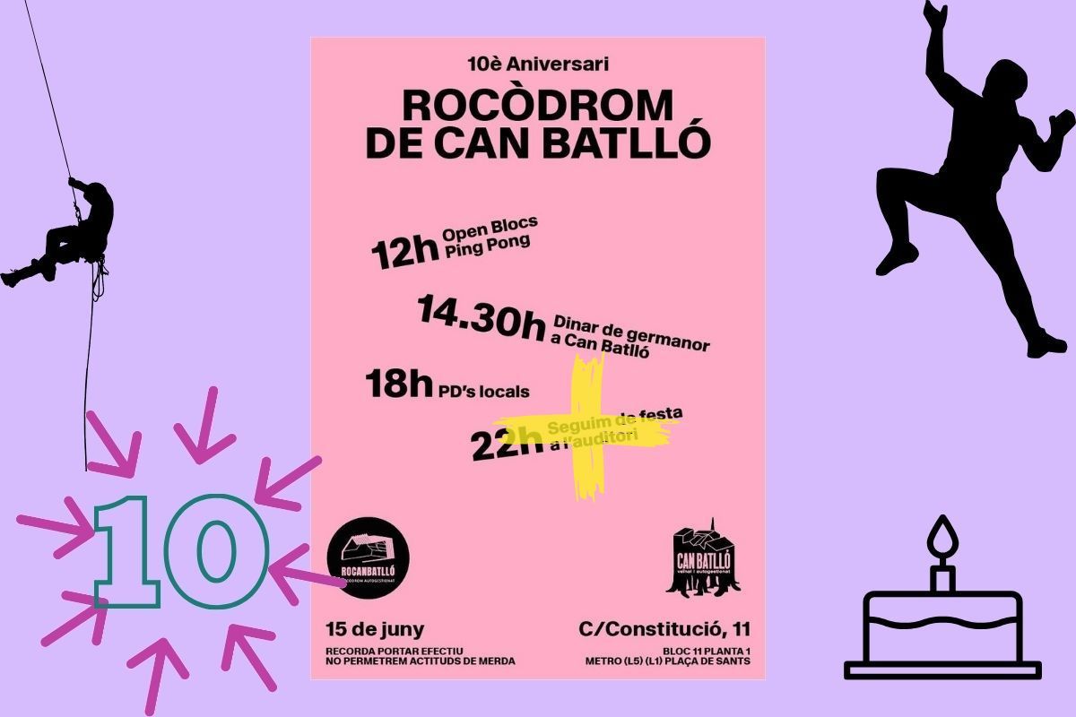 Vine a celebrar el 10è aniversari del Rocòdrom Autogestionat de Can Batlló!!!