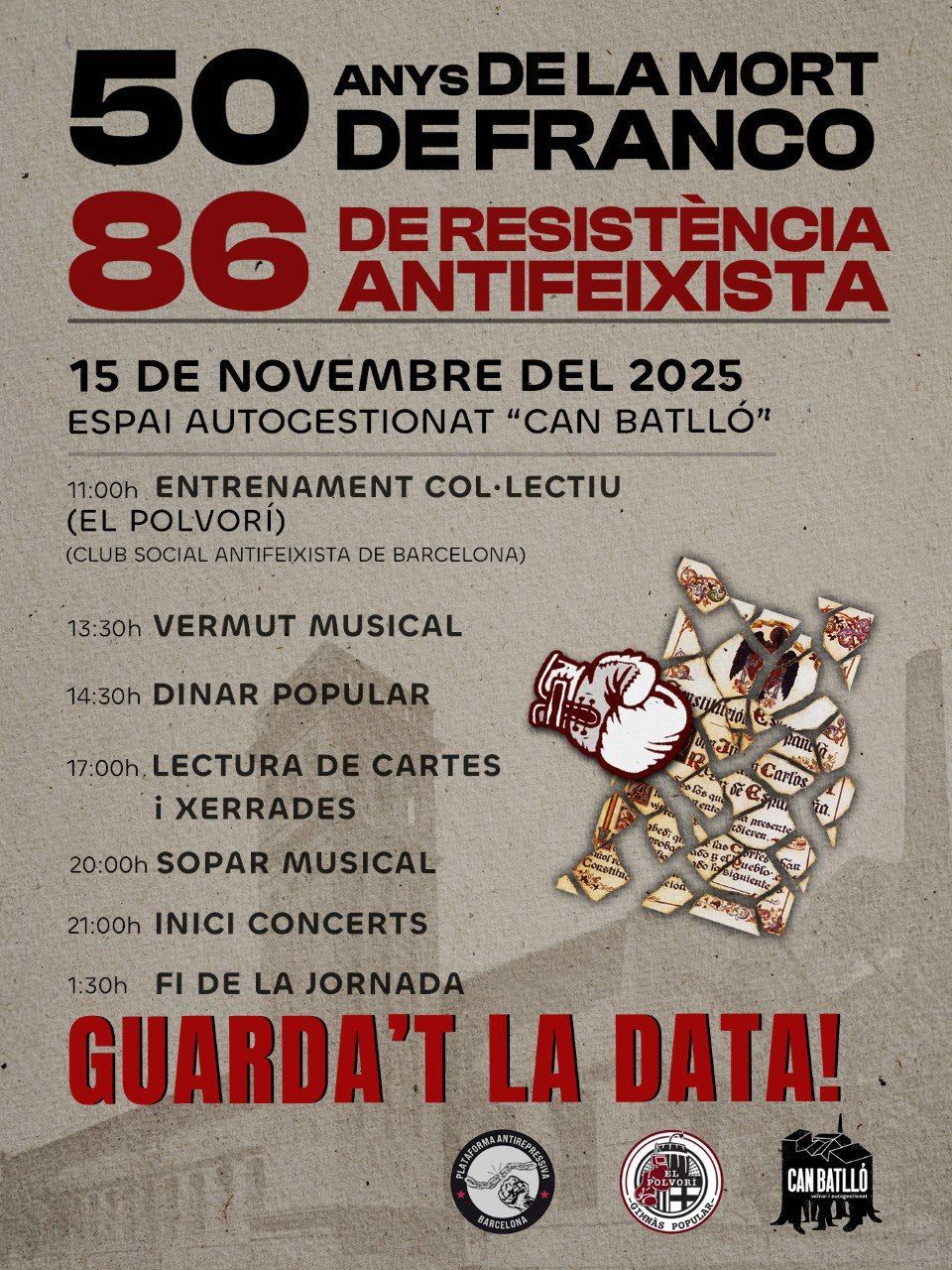 ❗Jornada Antirepressiva: 50 anys de la mort de Franco, 86 anys de resistència antifeixista❗