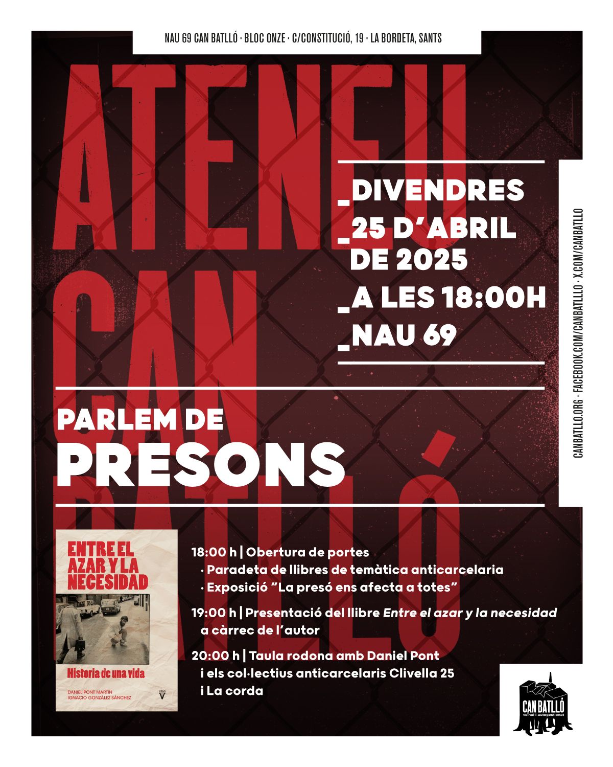 En aquest context, i veient com històricament s’ha autoorganitzat la lluita contra les presons i com ara mirem de trobar les clivelles dels murs per fer-hi front, és on ens hem de repensar i reflexionar per fer, ni que sigui, els murs menys alts.
