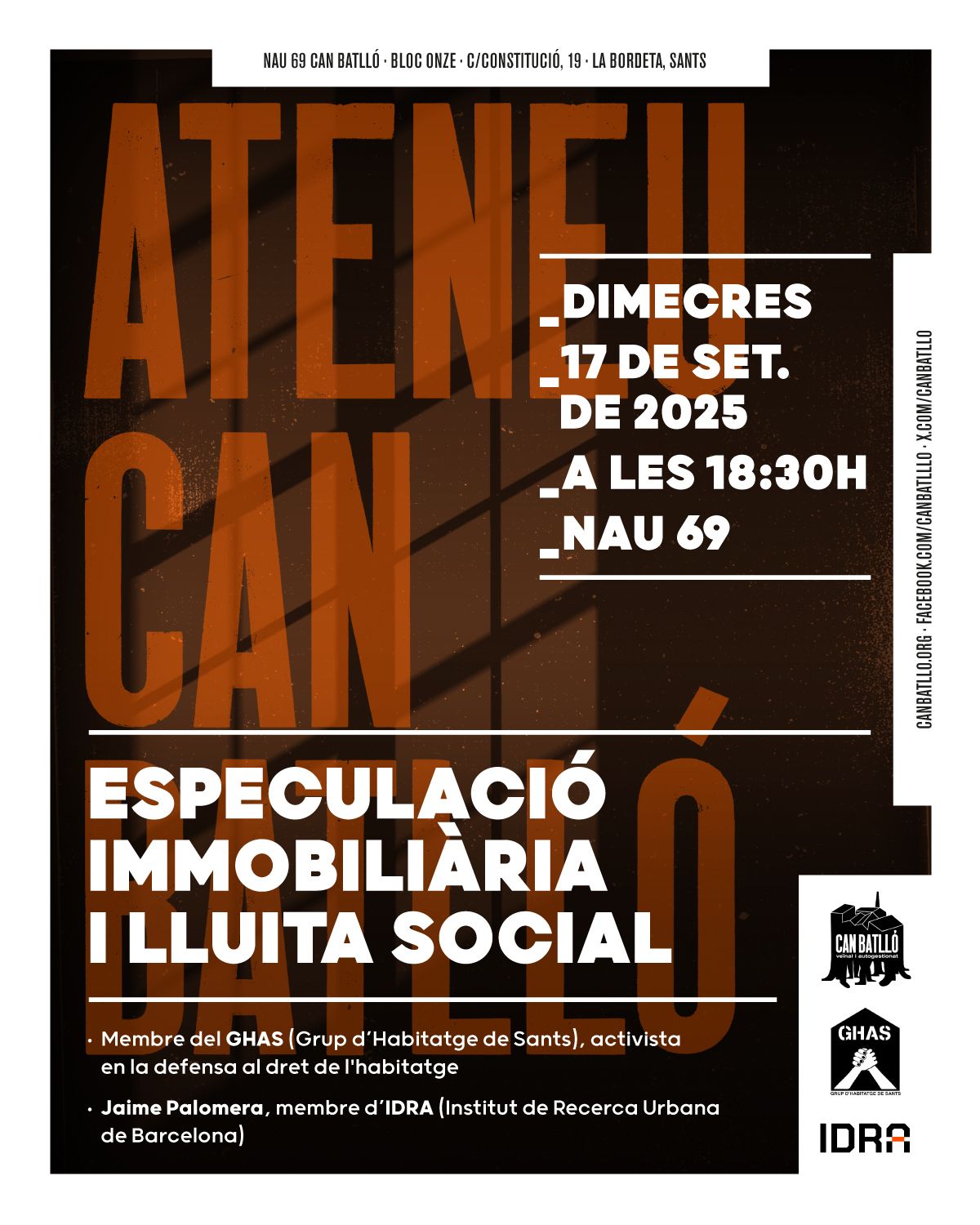 Els qui faran les exposicions ens donaran la seva mirada d’anàlisi, estudi i proposició d’alternativa i, també, els seus arguments de lluita quotidiana, concreta i “posant el cos”. Sobre el que es legisla o no arriba a ser llei, la qual cosa sí que fan els fons voltors i altres especuladors menys evidents; sobre el que es proposa des de la societat i s’actua des de les organitzacions socials escoltarem i parlar. .