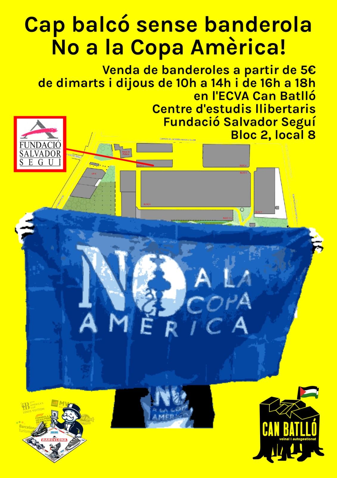 Venda de banderoles a partir de 5€ de dimarts i dijous de 10h a 14h i de 16h a 18h en l’ECVA Can Batlló, aquest agost de 2024