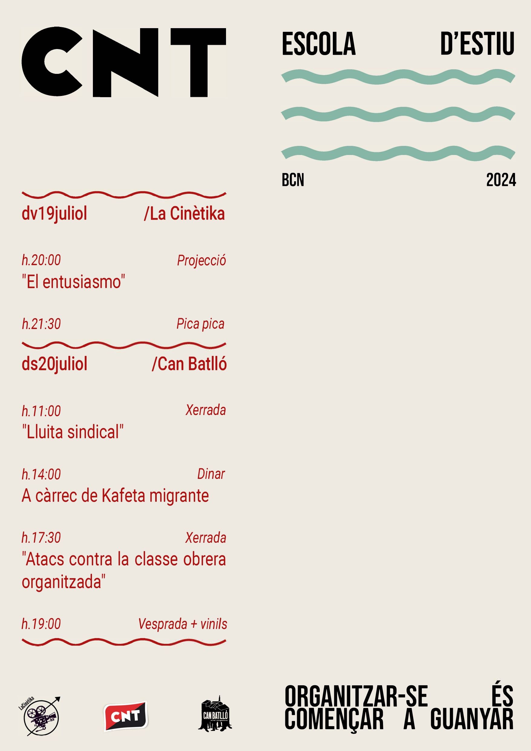 Aquest dissabte a Can Batlló acollirem la segona edició de l’Escola d’Estiu 2024 de la CNT .