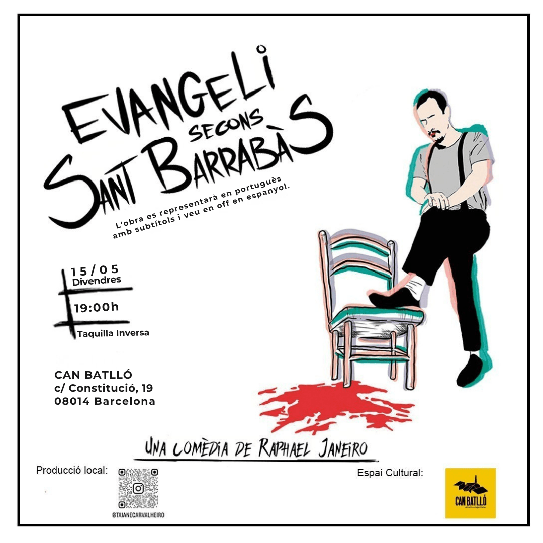 “Evangeli segons Sant Barrabàs” és una comèdia brasilera que es va estrenar el 2019 a Rio de Janeiro. Guanyadora dels premis a Millor Banda Sonora (Araruama, 2019), Millor Paisatge Sonor (Viçosa, 2022) i Millor Text Original (Passos, 2023), l’espectacle ja ha passat per importants escenaris cariocas (Teatre Ipanema, Sala Baden Powell, Casa de Pedra) i va realitzar el 2024 les seves primeres funcions internacionals a Bolonya, Itàlia. El 2026 continua amb presentacions a Barcelona, Espanya, i a Porto, Portugal.
