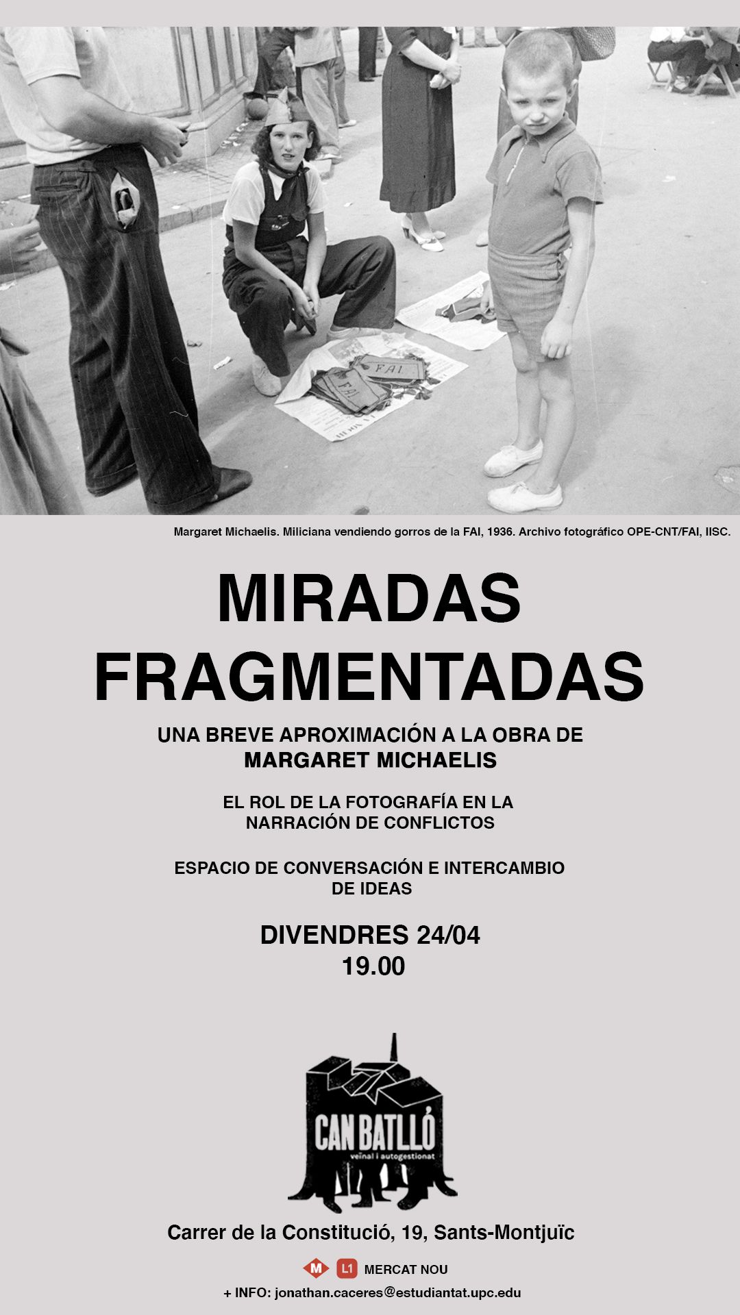 Aquest relat destaca la trajectòria de Margaret Michaelis, una fotògrafa que va escapar del nazisme per a, entre altres coses, documentar la situació social de les classes baixes i de la Barcelona anarquista, abans i durant la Guerra Civil Espanyola.