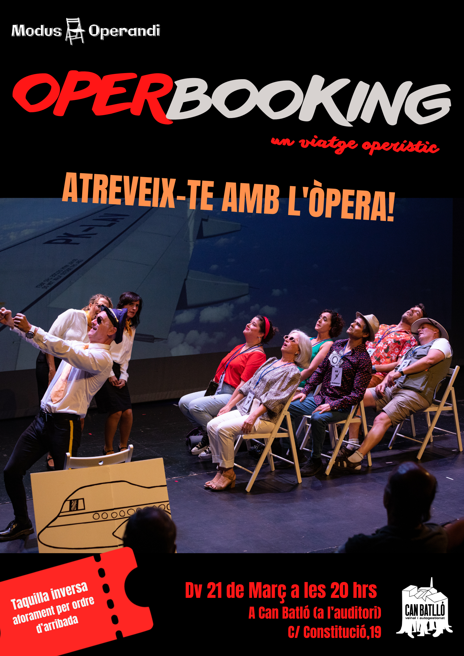 L’espectacle es diu “OPERBOOKING” i escenifica una viatge d’un grup de turistes per diversos destins mundials. Cada número musical és un fragment d’Òpera i un destí del grup de viatgers. Finalment es troben una sorpresa inesperada … però amb final feliç!!