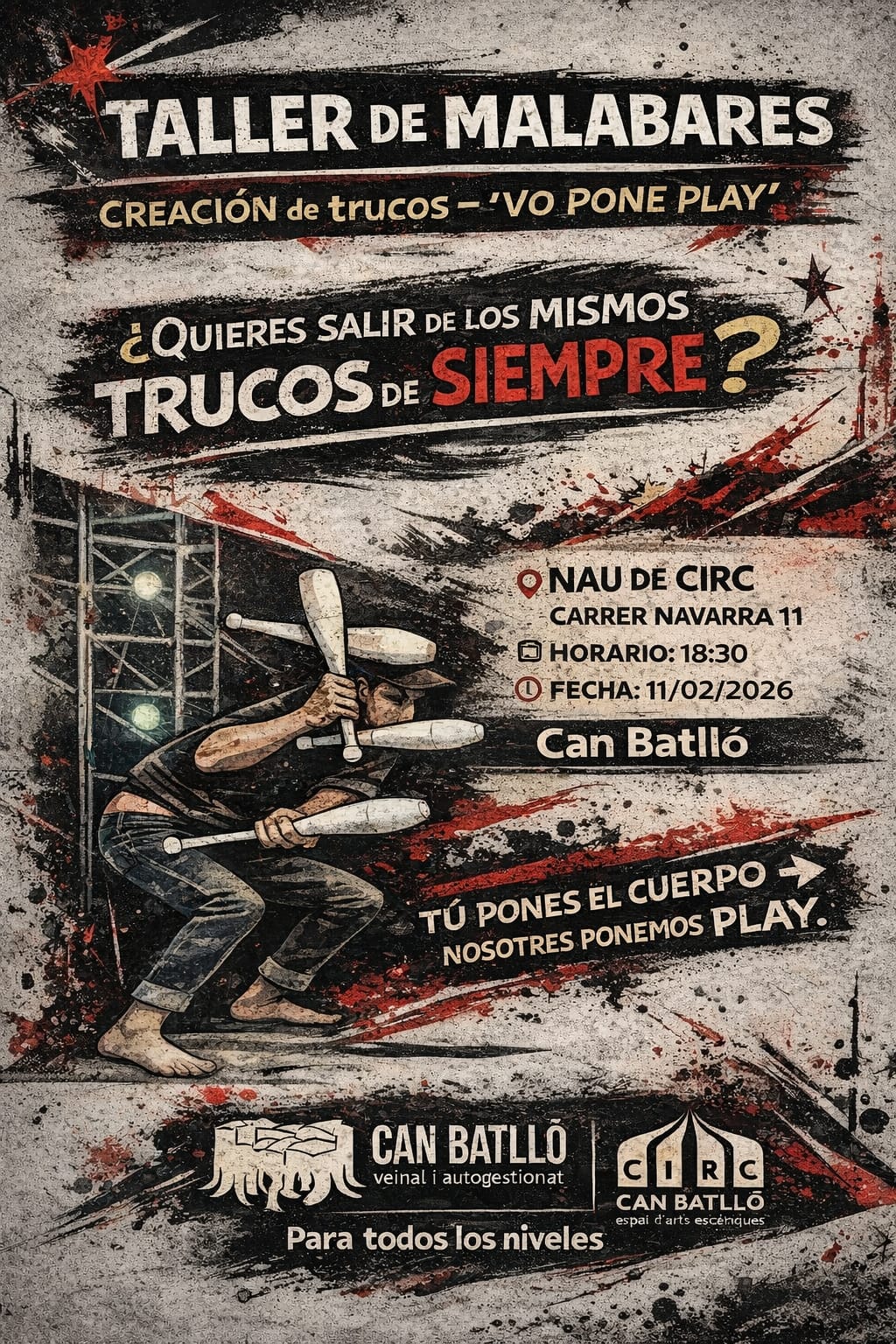 En aquest taller anirem a jugar, investigar i crear nous moviments amb” clavas” a partir del que cada persona ja sap, treballarem: