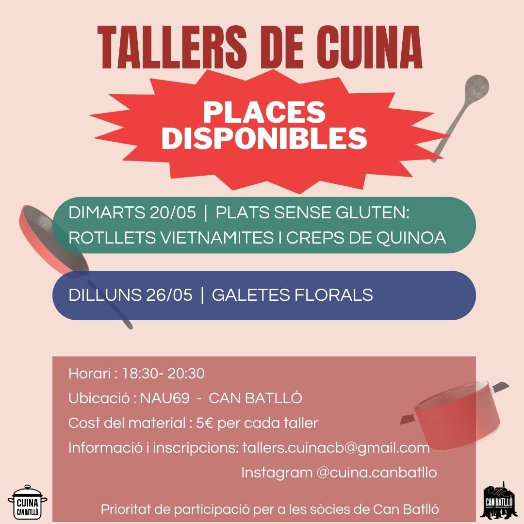 ???? Inscripcions i info: tallers.cuinacb@gmail.com o Instagram: @tallerscb .cuina