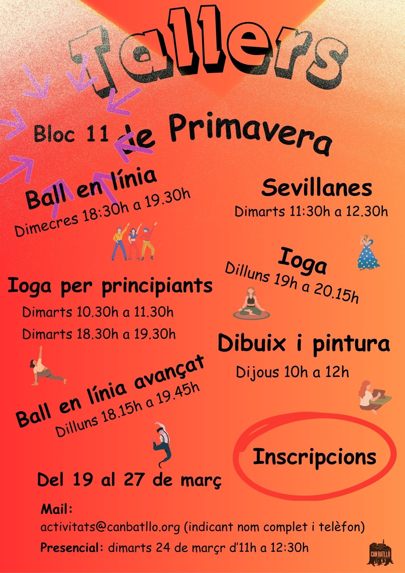 • 👉🏼 via mail a activitats@canbatllo.org indicant nom complet i número de telèfon